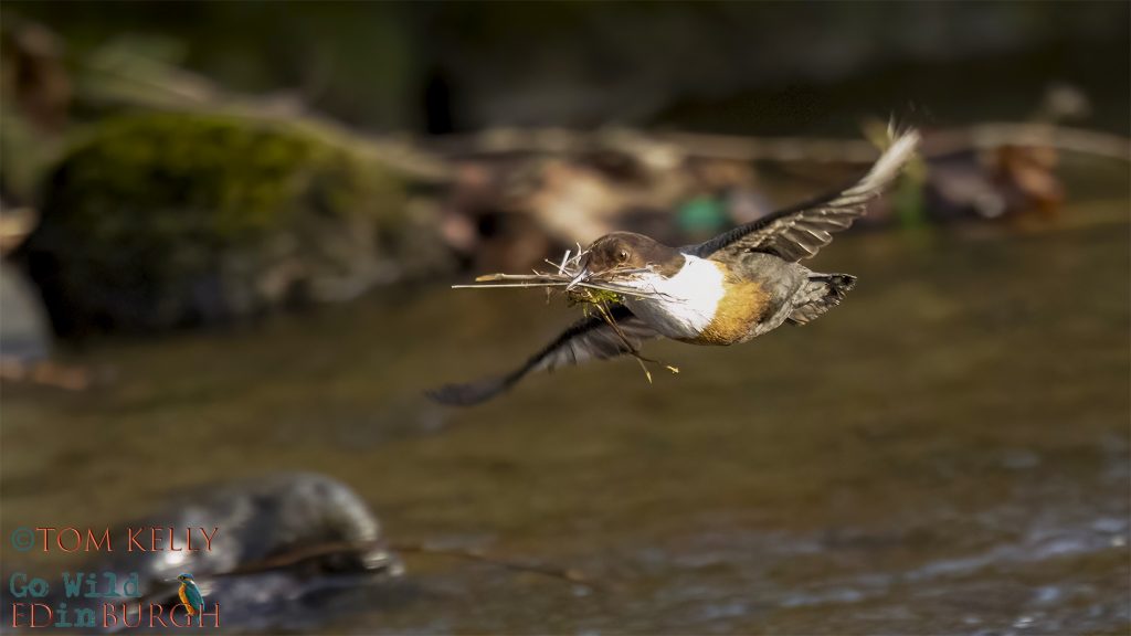 From the high(ish) water levels on the Water of Leith, at the start of February, the position was reversed in March, to very low levels. What this meant, was that the kingfishers, that moved out in February, due to the high and fast water levels, slowly returned during March, just in time for the breeding season.