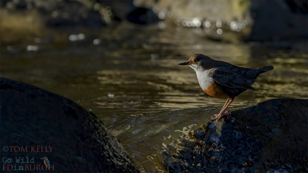 The River Almond to the west of Edinburgh had plenty of wildlife on the water this month – several kingfishers, goosanders, mallards, goldeneyes, herons, a buzzard but it was the dippers that I was out to photograph on both visits.
