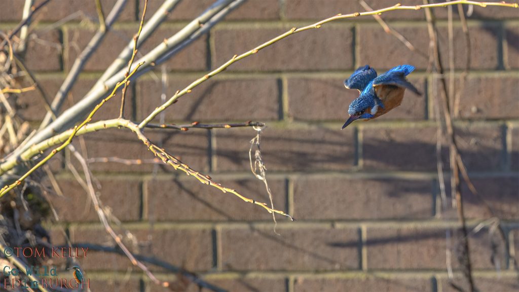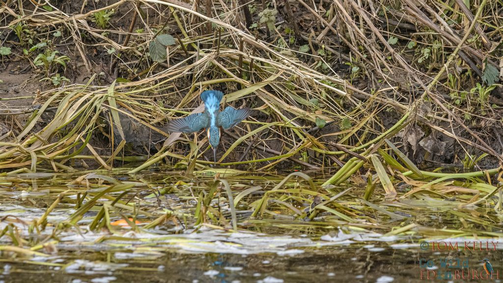 On a more positive note, the third week in January was probably one of the best weeks in the last year for photographing kingfishers on the Water of Leith.  The low winter sun was almost uninterrupted all week and the kingfishers were unusually predictable in terms of location and times.  One kingfisher, in particular, was sticking to a 100 yards stretch, for up 30-40 minutes at a time and diving regularly throughout the whole week.