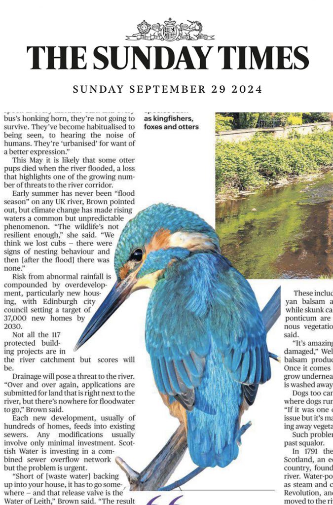 Interesting article in Sunday Times last Sunday (29 Sept 2024), about the Water of Leith’s industrial past and its transformation by the Water of Leith Conservation Trust into a haven for wildlife.